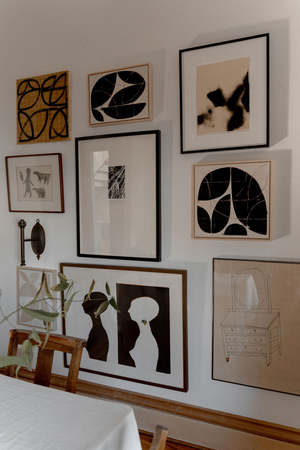 S1.26 Host. 2024. Hannah Franco. Oil and mixed media on canvas. Maple float. 16" x 12" x .075". Featured in Broken Dishes, a solo show by Hannah Franco at the Erica Tanov Atelier during the spring of 2025. Hannah Francos geometric oil paintings are inspired by the quilts of her grandmother. They visually depict the stories of the female lineage in her family, breaking down the worth of craft and other undervalued womens work in American culture. Hannah earned a BFA from Pratt Institute in Brooklyn and recently completed studies on frescos in Florence, Italy. Based in Oakland, California, she works primarily with oil and encaustic. As an abstract painter, she is drawn to the interplay of opposites and the ways in which we can shift our perspectives on gender roles and traditional women's work through the visual tools of fluidity and structure. Type: art