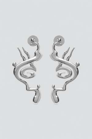 Sterling Desert Hideaway Earrings from Hannah Jewett. Push back earrings with an abstract minimalist design. - .925 Sterling Silver - Made in Italy - Length: 2" / width: 1.3" / depth: .25"