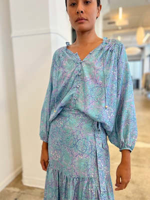 Color: Sweet Pea Blue Multi 100% Silk Fit: True to size Made in India