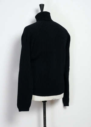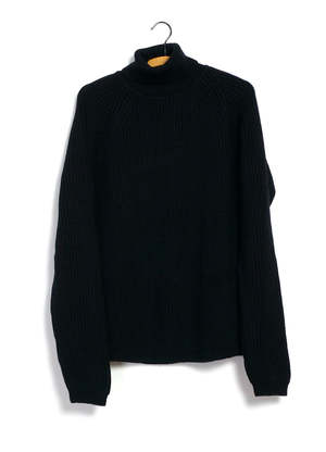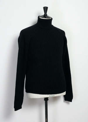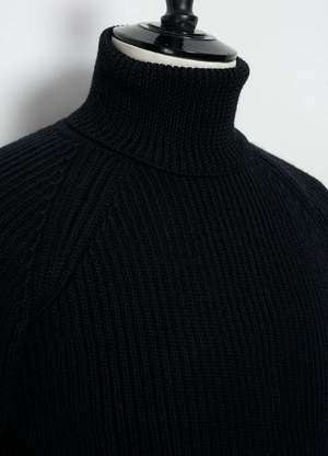 A heavy-weight turtleneck from Hansen Garments, the Pelle is made of Austrian virgin wool. Inspired by fishermen's knitwear, it's made with four ends of yarn in a full cardigan stitch for heft, with a regular, straight fit. Full vertical rib knit, raglan sleeve. DETAILS + FIT - 100% virgin wool - Heavy-weight, full cardigan stitch body, rib stitch collar and cuffs - Straight fit - Model is 6'2" and wears size M - Made in Europe