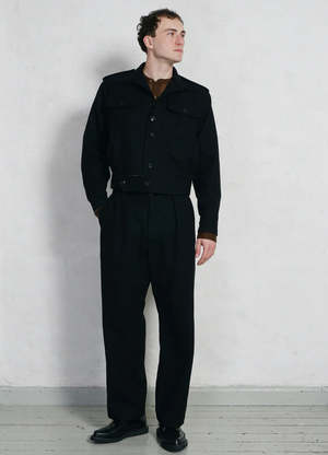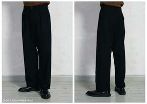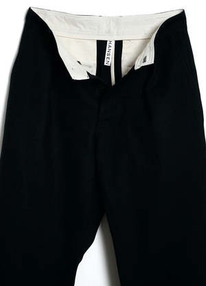 From Hansen Garments, the Sean pant is a loose fit, high-waisted trouser with pleats at the front. It has one welt pocket and one buttoned flap pocket at the back. The fabric is an Italian wool blend with a dense weave and a slightly felted, dry handle. DETAILS + FIT - 70% wool, 30% polyester - Loose fit - Model is 6'2" and wears size M - Italian fabric - Made in Europe