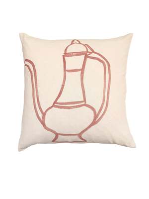 Our new pillow collectsion brings a quiet, everyday ritual into the home. Each piece features hand-painted teapots and coffee makers, created in our studio in a warm, earthy brown palette. The fabric is entirely handwoven cotton, made without any chemicals, carrying the subtle texture and irregularity that make each piece unique. Thoughtfully crafted, these pillows blend art, function, and a sense of calm. Insert included with feather and down. Somnath is the artisan from West Bengal who hand spun and wove this cotton fabric. This pillow is dyed, cut, sewn, and hand-stitched in Rajasthan, India. Care: Cold hand wash separately. Refresh with gentle soap, or gently rub by hand. Use a natural detergent that does not contain citrus or other acidic oil scents. Machine dry on low or hang dry out of direct sunlight. This product has been dyed or block-printed using ancient techniques. Colors may gradually change over time.
