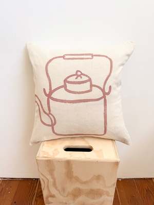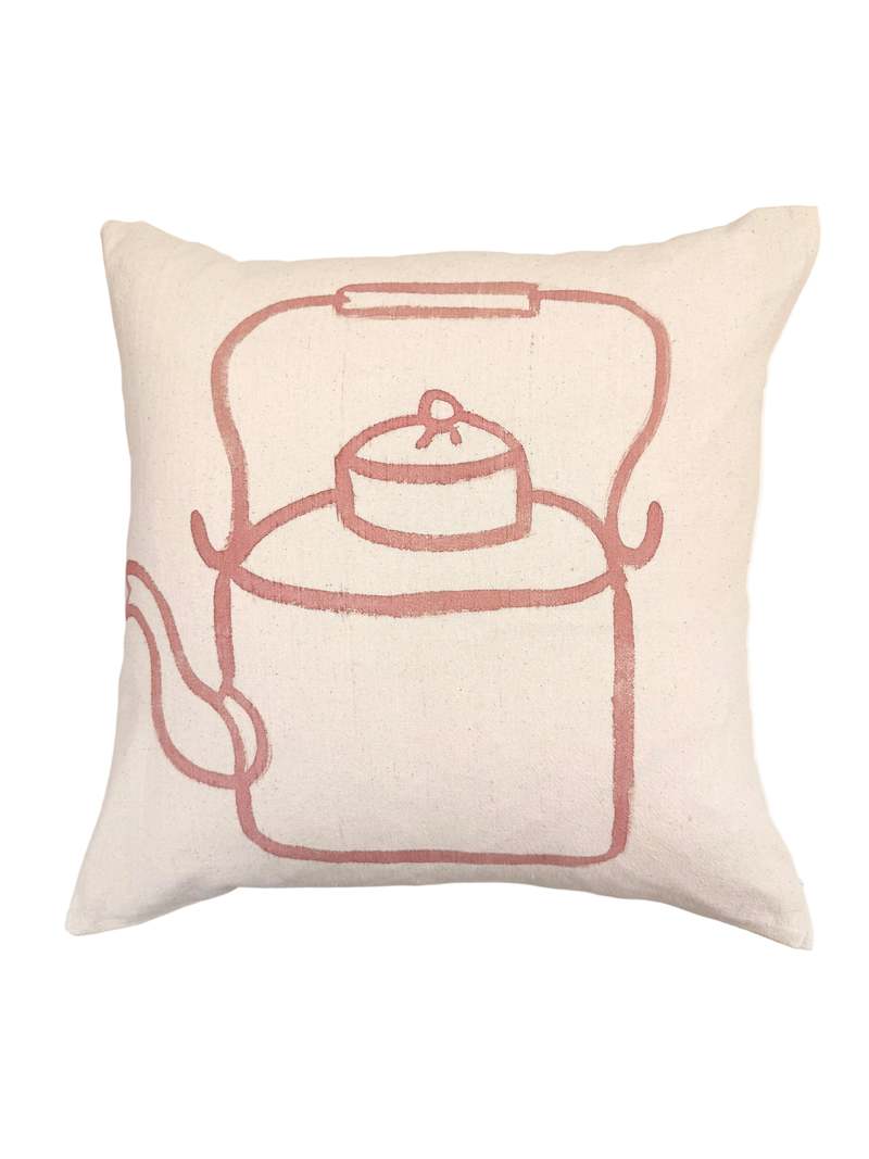 Our new pillow collectsion brings a quiet, everyday ritual into the home. Each piece features hand-painted teapots and coffee makers, created in our studio in a warm, earthy brown palette. The fabric is entirely handwoven cotton, made without any chemicals, carrying the subtle texture and irregularity that make each piece unique. Thoughtfully crafted, these pillows blend art, function, and a sense of calm, like a slow morning captured in cloth. Insert included with feather and down. Process: Somnath is the artisan from West Bengal who hand-spun and wove this cotton fabric. This pillow is dyed, cut, sewn, and hand-stitched in Rajasthan, India. Care: To maintain its beauty, cold hand wash separately. Refresh in a bath of gentle soap or gently rub by hand. Use a natural detergent that does not contain citrus or other acidic oil scents. Machine dry on low or hang dry out of direct sunlight. This product has been dyed or block-printed using ancient techniques. Colors may gradually change over time.