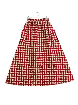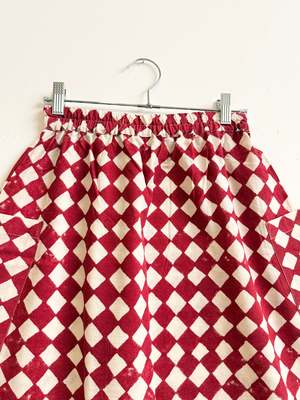The Tilda Skirt from Happy French Gang is available from size XS to XXL. Made from 100% natural hand-woven cotton, woven and hand-block printed by artisans in a cooperative in India. Dimensions: Total waist (relaxed): - XS: 64.5 cm / 25.2 in - S: 69.5 cm / 27.1 in - M: 74.5 cm - L: 82 cm / 29.1 in - XL: 92 cm / 36.2 in - XXL: 102 cm / 40.1 in Length: - XS: 95.5 cm / 38 in - S: 67 cm / 38.5 in - M: 99 cm / 39 in - L: 100 cm / 39.25 in - XL: 101 cm / 39.5 in - XXL: 101 cm / 39.5 in Care: To maintain its beauty, cold hand wash separately. Refresh in a bath of gentle soap or gently use your hands to slightly rub. Use a natural detergent that does not contain citrus or other acidic oil scents. Machine dry on low or hang dry out of direct sunlight. This product has been dyed or block-printed using ancient techniques. Colors may gradually change over time. Made in India.