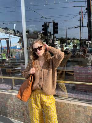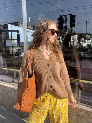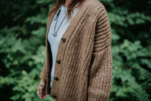 Our Gaston Cardigan is made out of 56% Alpaca, 44% Pima Organic Cotton. Our yarn is undyed. and this garment is produced in Peru. Dimensions: Measured flat: S/M: Chest 54.5cm/21.4in, Length 59cm/23.2in, Sleeve length (from shoulder seam) 39cm/15.3in M/L: Chest 58.5cm/23in, Length 63cm/24.8in, Sleeve length (from shoulder seam) 43cm/16.9in Care: To maintain its beauty, hand wash in lukewarm water or machine wash cold on wool program using mild detergent. Do not soak. Lay flat to dry and store folded. By choosing our knit, you support sustainable fashion and enjoy a one-of-a-kind, handmade garment. Add this exquisite cardigan to your wardrobe today.