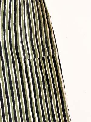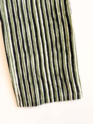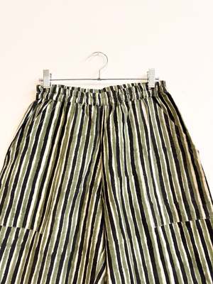 Omar Pants from size XS to XXL. - Elasticated waist - Two side seam pockets Single layered with our light 100% natural hand-woven cotton. Woven by our artisans in our cooperative in India. Preshrunk. These pants have been hand-block printed. Dimensions: Total waist relaxed: XS (64.5cm/25.2in), S (69.5cm/27.1in), M (74.5cm/29.3in), L (82cm/32.2in), XL (92cm/36.2in), XXL (102cm/40.1in) Outseam length from top to edge: XS (56.5cm/21.9in), S (57cm/22.1in), M (57.5cm/22.2in), L (58cm/22.4in), XL (58.5cm/22.6in), XXL (59cm/23in) Front rise from top edge: XS (24cm/9.44in), S (25.5cm/9.8in), M (27cm/10.6in), L (29.5cm/11.4in), XL (32cm/12.6in), XXL (34.5cm/13.4in) Back rise from top edge: XS (37cm/14.5in), S (38.5cm/14.9in), M (40cm/15.7in), L (43cm/16.9in), XL (46.8cm/18.1in), XXL (50.6cm/19.5in) Care: To maintain its beauty, cold hand wash separately. Refresh in a bath of gentle soap or gently use your hands to slightly rub. Use a natural detergent that does not contain citrus or other acidic oil scents. Machine dry on low or hang dry out of direct sunlight. This product has been dyed or block-printed using ancient techniques. Colors may gradually change over time.
