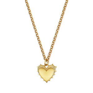 This necklace features the Small Heart of Gold Charm fixed on an 18" Mini Belcher Chain. A timeless piece with a soft, brushed texture, designed to channel the feeling of loveradiant, powerful, strong, resilient, and bursting with optimism. Charm details: - Dimensions: 11mm tall, 9.5mm wide - Tarnish resistant 18K gold-plating that is long-lasting with proper care - Plating thickness is 4x industry standard for extra durability (80 mils vs. 20 mils) - Plated over quality brass; nickel-free - Responsibly manufactured; plated with recycled gold in an environmentally-friendly facility Chain details: - Chain length: Available in 18, 22, or 26 inches; chain links are approximately 4mm tall, 4mm wide - Durable gold-filled 18K chain made in USA (gold-filled is the next best thing to solid gold) - Finished with a gold-filled lobster clasp