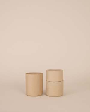 This streamlined, stackable tumbler has an organic, textured feel and is designed for everyday use. It can be used for coffee, tea, other drinks, or as a container for pens and pencils. DETAILS: Height: 3.25 in Material: Porcelain Handmade in Hasami, Japan Every item of Hasami Porcelain is designed with uniform diameters to allow for easy stacking, attractive storage, and simple carrying. The organic feel and neat stackability make Hasami Porcelain a favorite maker of modern tableware. Made by craftspeople in Nagasaki, Japan, from Amakusa pottery stones mixed with potter's clay. MPN: HP038