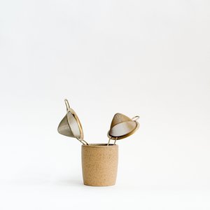 Utility and artistry in a timeless essential. Handcrafted from solid, untreated brass, it features a fine gold mesh that ensures smooth, refined results by filtering out ice shards, herbs, and pulp. Durable and elegant, its designed to age beautifullydeveloping a natural patina over time. Fits nicely into mugs of most sizes as a loose leaf tea infuser.