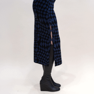 Take a step into style with the Jacquard Split Skirt. Made from 100% merino wool, this midi length skirt features an abstract blue print that is truly unique. Add some adventure to your wardrobe and pair it with the matching Jacquard Crewneck Jumper for a bold look! Composition: 100% Merino Wool Fit: Slim fit; model is 57 and wears a size XS.
