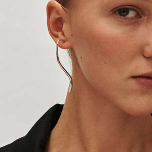 Introducing the Lenora Earrings. These earrings feature a sleek, fluid silhouette that slips effortlessly through the earno backing required. Crafted with a refined minimalism, their gentle curve catches the light with quiet sophistication. Designed for ease and versatility, they complement everything from a crisp shirt to an evening dress. Crafted in Silver PVD-plated stainless steel, the Lenora Earrings resist tarnishing, scratching, and discoloration while remaining hypoallergenic and water-resistant for everyday wear. For pierced ears only. Sold as a pair; no backings included.