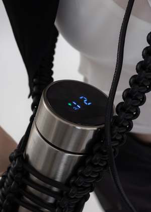 Brushed aluminum logo2-printed water bottle with a touch screen temperature gauge at the cap. One Size 98% Stainless Steel, 2% Polypropylene Imported