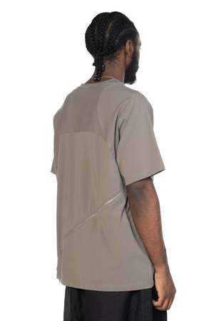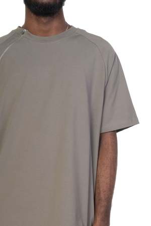 Short sleeve T-shirt with round neck and zip throughout. Features a boxy fit. Composition: Cotton.
