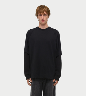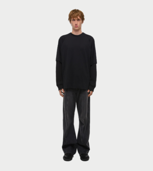 Helmut Lang long sleeve double-layered waffle top in black.