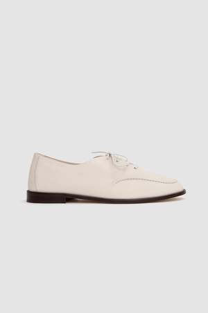 High-cut deconstructed lace-up loafer crafted in light grain lambskin. Made in Spain by uniquely talented artisans, celebrating excellence in craftsmanship.