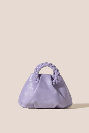 By Hereu Small leather crossbody with plaited handles, crafted in supple lambskin lined with organic cotton canvas. Handmade in Spain by uniquely talented artisans, celebrating excellence in craftsmanship. - Colour: Lavender - Pleat detail on front and back - Adjustable tubular shoulder strap. Length: 108 cms - Magnetic-fastening top Measurements: 14 x 21 x 8 cms Handle drop: 4 cms
