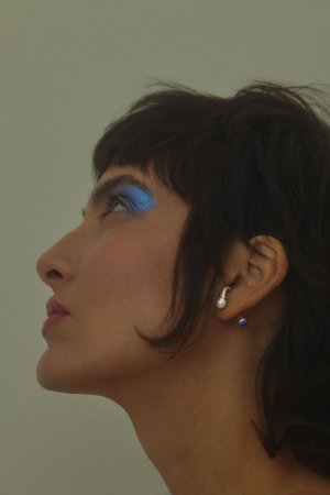 Two pieces become one open amorphous shape. Freshwater pearl and lapis lazuli over sterling silver. For daily wear. *Sold individually. If you would like to dress both ears, choose 2 in quantity. By HERNN HERDEZ Details Sterling Silver Made in NYC