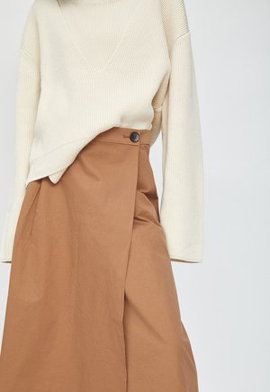 asymmetrical wrap skirt with button closure. COMPOSITION cotton 100% MEASUREMENTS size S: length 31.9~35.8in - waist 13.58in - hem 19.3in size M: length 32.28~36.2in - waist 14.56in - hem 20.28in