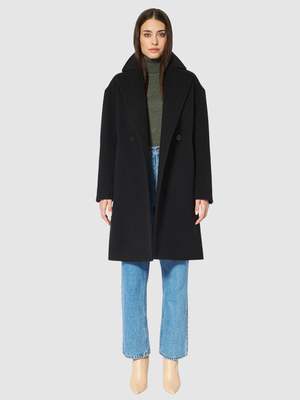 This Italian wool cashmere blend blazer is double breasted and relaxed through the shoulders, arm, and torso. It features a kimono gusset sleeve, large notch collar, back vent, and single welt pockets. Italian wool and cashmere blend. This fits true to size.