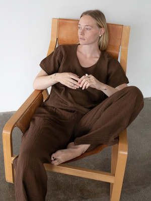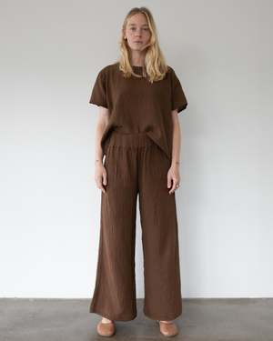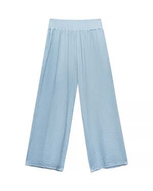 Forever soft and breezy, these high-waisted pants are made in our signature crinkle cotton. Mimicking the Poplin Pant, they feature a generous stride, longer inseam, high-waist, and a thick waistband. Pair with your favorite knit, a simple tee, or toss on over a bodysuit for the most comfortable and chic outfit. INSEAM 30" STRIDE 15"