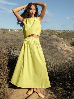 The Palmer Skirt by Honest Cotton is an easy-to-wear midi skirt with a wide elastic waist and on-seam side pockets. Made from 100% poplin cotton. Machine washable. Designed in Laguna Beach, CA. Made in Thailand. If you'd like to see a little shrinkage, dry the piece with heat. If you like the fit as is, air dry.