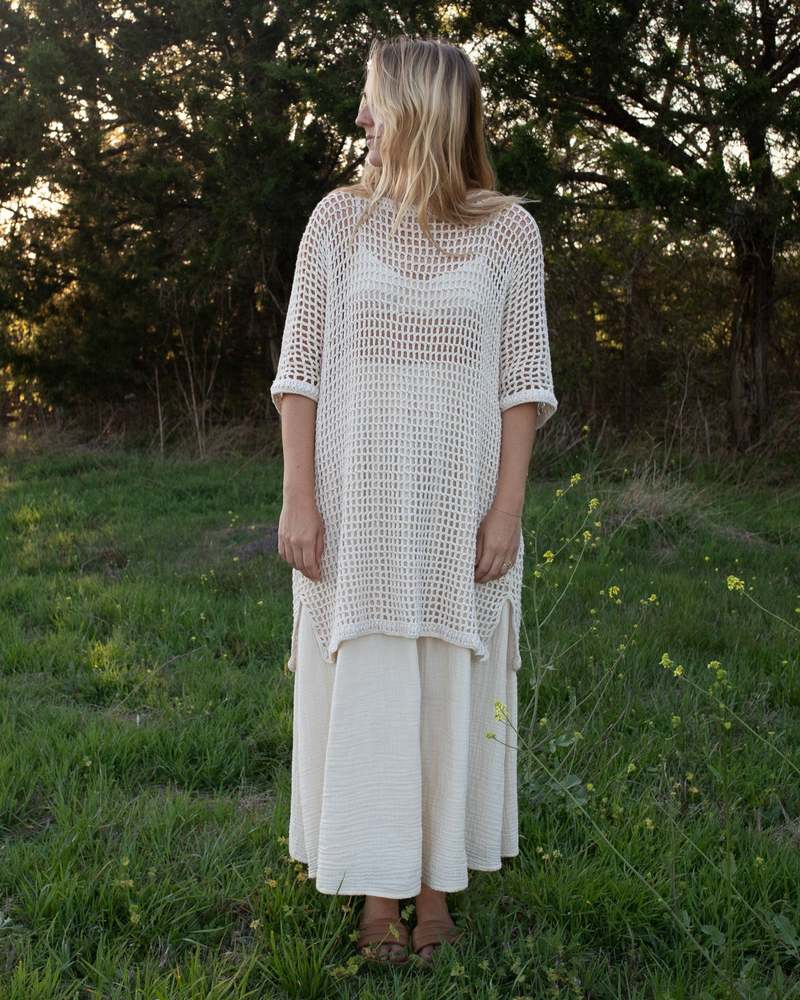 Handwoven in Thailand, this cover up elevates the typical beach look. With a tighter weave at the edges and a loose silhouette, it can be worn over a favorite suit or layered with a slip dress for an off-the-water outfit. Title tag Marie Crochet Coverup - Handmade 100% Cotton Beachwear Description tag Shop the Marie Crochet Coverup, a handmade 100% cotton piece perfect for the beach or poolside. This elegant coverup combines style and comfort, making it an essential addition to your summer wardrobe. Handcrafted with care in Thailand. Custom product true