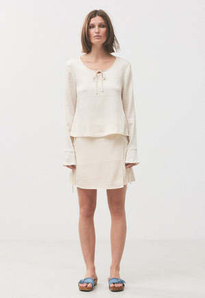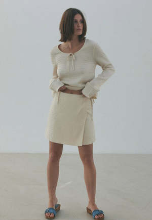 Off white wrap skirt with wrinkled detail pattern. COMPOSITION 98% Recycled Polyester 2% Spandex SIZE & FIT Model is 5'9" and wears a size S ABOUT HOSBJERG Hosbjerg is a Danish fashion brand with its head office in the heart of Copenhagen. Hosbjerg was established in 2014 by founder Camilla Hosbjerg. Camilla created the brand with the purpose of making designs in good quality at affordable prices. Something she felt like had been missing in the industry. The Hosbjerg design and DNA combines sporty and comfortable with a twist of playfulness. Its important for us to dare to be innovative and different. Bright colors, funky prints and crooked details will always be a part of our collectsions.