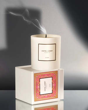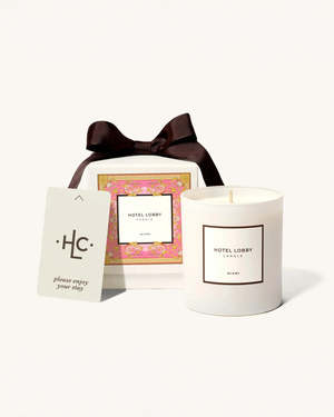 The Miami Candle by Hotel Lobby features a sophisticated blend of white petals, bergamot, cedar, cashmere, and rosewood. Size: 9.75 oz Details: - 100% soy wax - Braided cotton wick - Signature white box with ribbon - Made in USA.
