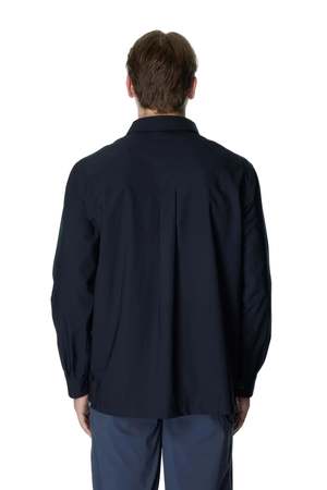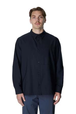 The Symbio Shirt in Black from Houdini. Soft and ultra-light long sleeve shirt ideal for warm climates. Wear it for active adventures or lazy days in the sun. Details - Relaxed fit - Zippered chest pocket - Quick drying - Stretchy - Excellent airflow - Cooling effect in hot weather - Comfort seams in non-friction areas - Fabric is fully recycled and recyclable - Weight men's large: 260 g - Fabric produced in Japan - Garment produced in Vietnam