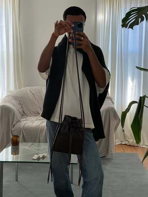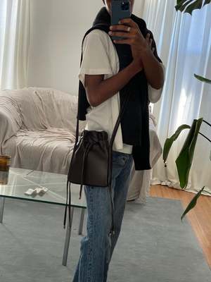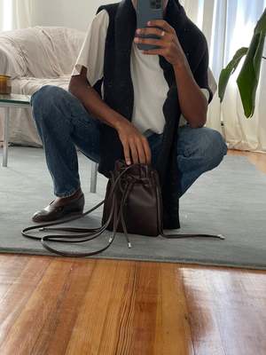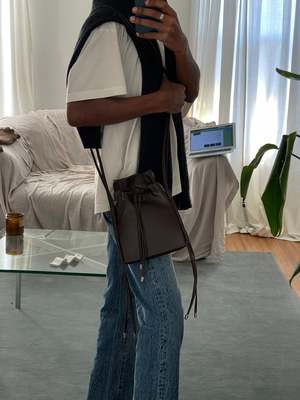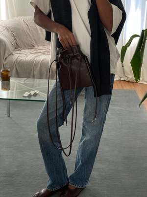 Stash bag (we kid). The Sling Pouch. A brown crossbody bag soft, structured, cinched, adjustable- strapped vegan leather bag is as true-blue as it is versatile. Check out the vegan sling bag in more colors! Wear your values, with us. HOZEN (Japanese for conservation) is luxury rooted in sustainability. All our small-batch, vegan leather products are made from upcycled, recycled, and biodegradable materials that are ethically crafted at a fair-wage factory in Los Angeles. Materials: Non-toxic, water-based vegan PU 'leather' Recycled plastic / organic cotton twill blend lining Recycled plastic thread Low lead brass hardware Recycled hemp label Vegan adhesive Size and Features: 7" width 7" height (plus 3" ruffle) Adjustable crossbody strap Metal cord end detail Structured base Cinch closure One interior slide pocket Title tag Sling Pouch Brown Crossbody Bag Grizzly Description tag The Sling Pouch. A brown crossbody bag with a soft, structured, cinched, adjustable-strapped vegan leather bag featuring an adjustable crossbody strap. Ethically crafted small brown bag with eco leather made in the USA. Discover the chocolate brown crossbody bag!