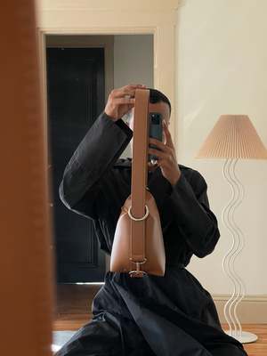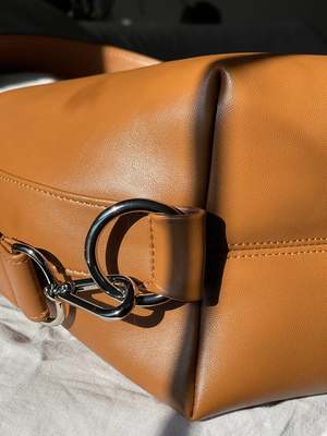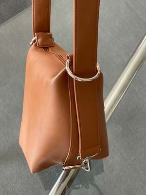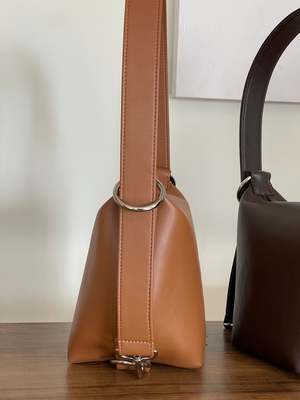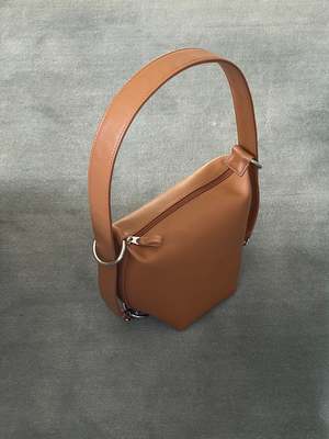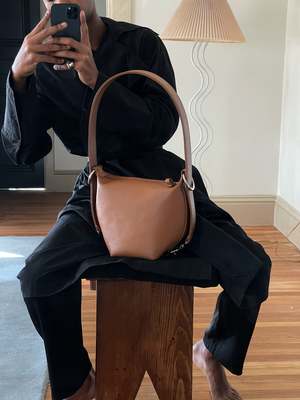 Meet the Fold Bag. This tan shoulder bag features a soft vegan leather exterior that folds beautifully when filled. Our medium-sized hobo silhouette in tan is detailed with our signature chunky hardware which allows you to adjust the strap to crossbody length. Versatility is what we're about. Wear your values with HOZEN's tan shoulder bag. HOZEN (Japanese for conservation) is luxury rooted in sustainability. Join the conservation movement and make a statement with this stylish and sustainably-made tan crossbody purse. All our small-batch, vegan leather products are made from upcycled, recycled, and biodegradable materials that are ethically crafted at a fair-wage factory in Los Angeles. Shop HOZEN's shoulder bag collectsion! Materials: Non-toxic, water-based vegan PU 'leather' Recycled plastic / organic cotton twill blend lining Recycled plastic thread Low lead brass hardware Recycled hemp label Vegan adhesive Size and Features: 11" width 9" height 6.5" depth Adjustable shoulder strap to crossbody strap Zip closure One interior slide pocket