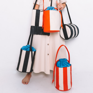 A sweet jug of supple, unexpected style. Don a vegan 'leather' Bucket, for the work weekand after hours happenings. Wear your values, with us. HOZEN (Japanese for conservation) is luxury rooted in sustainability. All our small-batch, vegan leather products are made from upcycled, recycled, and biodegradable materials that are ethically crafted at a fair-wage factory in Los Angeles. Materials: Piatex 'leather' body (biodegradable, pineapple husk fiber) Recycled plastic / organic cotton twill blend lining Recycled plastic thread Recycled plastic zippers Recycled cotton label Vegan adhesive Size and Features: 7.5" diameter 9.25" height 12" strap drop (custom sizing available) Drawstring cinch closure One interior slide pocket One interior zip pocket Amp {"amphtml":" A sweet jug of supple, unexpected style. Don a vegan 'leather' Bucket, for the work weekand after hours happenings. Wear your values, with us. HOZEN (Japanese for conservation) is luxury rooted in sustainability. All our small-batch, vegan leather products are made from upcycled, recycled, and biodegradable materials that are ethically crafted at a fair-wage factory in Los Angeles. Materials: Title tag Stripe Bucket Bag | Piatex Bag in Flamme + Natural | HOZEN Description tag Discover our vegan Piatex leather stripe bucket bag in red and white stripes. Made ethically with biodegradable and recycled materials in the USA. Shop now! Google product category 6552 Condition new