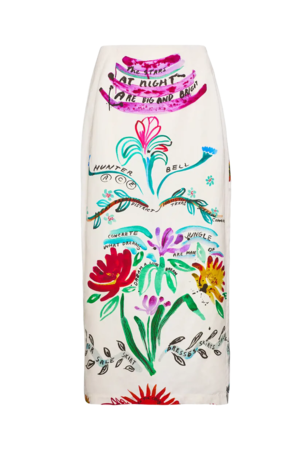 The Lynne Skirt is a refined midi pencil silhouette in a custom linen-blend anniversary print. Designed with a clean back vent and zipper closure, it offers timeless structure with modern ease. High-waisted fit.