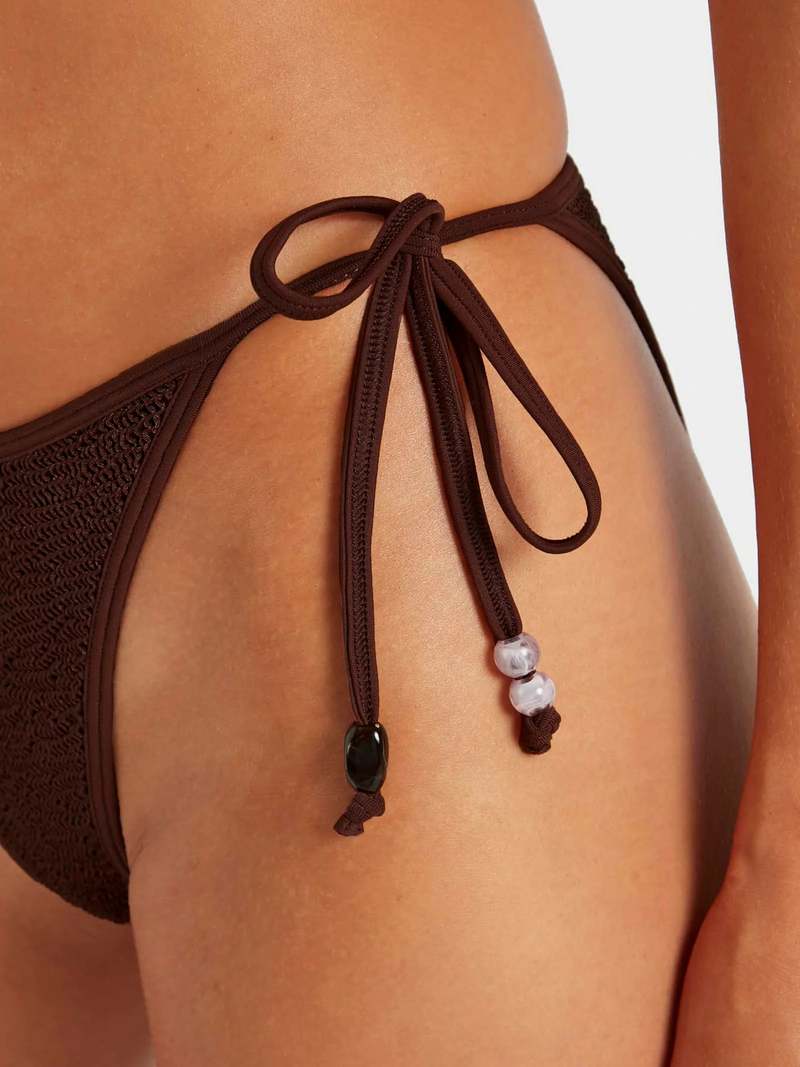 Beaded detailing and adjustable side ties let you style it your own way. Top and bottom sold separately. All swim purchases are FINAL SALE. Say goodbye to sizing stress. Hunza G's signature Original Crinkle fabrication stretches to flex, sculpt, and support every curve, adapting to all body types in a unique one-size fit to provide confidence and style for every body. The one-size design offers a custom-like fit for UK 6-18 (US 2-14). Hunza G swimwear returns to its original shape after every wear, making it a timeless choice for your swim collectsion.