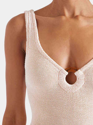 This pretty modern swimsuit has a timeless appeal. Featuring tortoiseshell hoop detailing and a deep V neckline, Celine is your go-to if you are after understated glamour. Sizing and information: One size really does fit all. Composition: 97% polyamide, 3% elastane. Your Hunza is made to last a lifetime and with just a little care, it will be with you for many years to come. After wear, simply machine wash in warm water and hang or lay flat to dry.