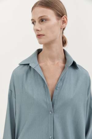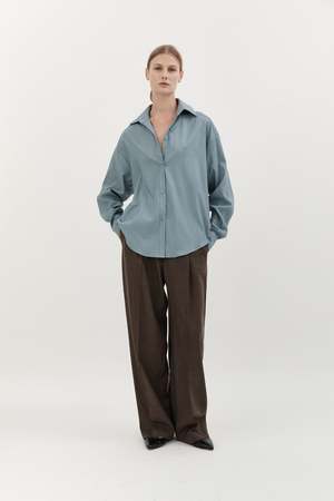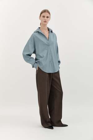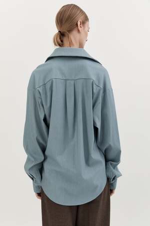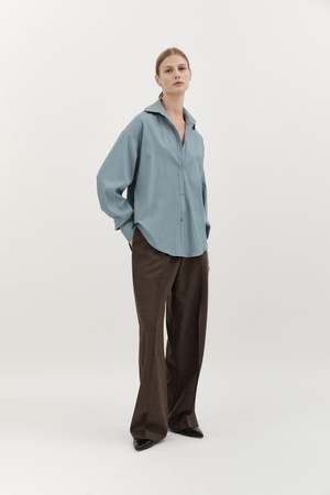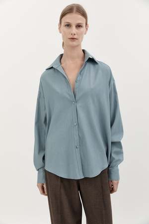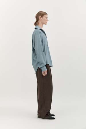 The Classic Wool Shirt by Hyde and Stone features a drop shoulder and relaxed fit. Color: Sky Blue Fabrication: 100% Wool Fit Notes: Runs big