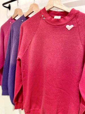 The coziest, softest, one size fits most sweatshirt with hand embroidered Heart at the neckline. Color: Red, Pink, or Purple 50% Cotton 50% Acrylic Machine wash Limited Quantity Available Hand embroidered in Los Angeles I Stole My Boyfriend's Sweatshirt's upcycled pieces transform yesterday's styles into more contemporary garments, using vintage clothing that is: hand-selected, customized, reimagined + remade.
