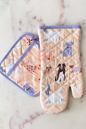 Our vibrant oven mitt and pot holder sets are just the thing to add a touch of colorful flair to your kitchen, and make the perfect hostess gifts. Made from 100% absorbent cotton and printed with our charming, hand-painted designs, each set showcases contrasting trim and a handy hanging loop. Machine wash cold, hang to dry.