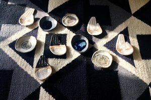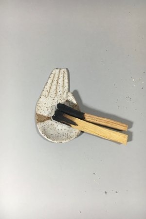 This small ceramic palm is perfect for holding your favorite jewelry and small trinkets - or for burning palo santo sticks or sage. The open hand has long been a symbol of protection and is thought to bring blessings of power and strength to your home. Since these pieces are made by hand and glazed individually, each one is unique. - Measures approximately 4" long x 2.5" wide. IIIVVVYYY is a collectsion of beautiful, stylish goods handmade by Ivy Weinglass in Brooklyn, New York. Not only does she create spiritual and distinctive ceramics, she also has tried her hand at making quilts from vintage bandanas and one of a kind embroidered clothing. Everything Ivy creates is truly special and you feel that when you own her pieces.