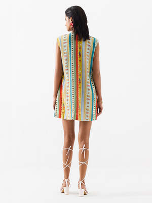 The Sea Shell Mini Dress by IKKIVI is crafted from stunning 100% linen fabrication and features a digitally printed multi-stripe seashell pattern. This trans-seasonal statement piece is a shift dress with an A-line fit, tie-ups at the neckline, pockets, and a concealed zipper. The dress is lined for comfort and can be styled in various ways. Model is wearing a size S. Care instructions: Dry clean only. Each piece is handcrafted with breathable, organic fabrics and unique hand-done details. Made with care by artisans across India.