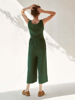 A beautiful new addition to our jumpsuit collectsion, the Beyond Basic is a timeless and minimalistic linen jumpsuit with a tie-up front. Sleeveless and wide-legged with a side pocket and concealed zip at the back for added convenience. The model is 5'8" and is wearing a size S. Length: 50 inches. Care Instructions: Hand wash or dry clean. Low heat iron. Pre-shrunk. Avoid direct sunlight and harsh detergents. Keep dark and light-colored garments separate as they are hand-dyed. Fabric: Linen. Each IKKIVI piece is made-to-order and crafted with care by artisans across India.