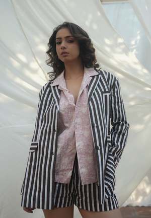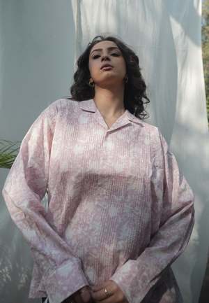 Light, airy, and quietly detailed, the Kiro Cuban Collared Shirt is designed for everyday dressing with a considered twist. The open collar frames the neckline, while vertical pintucks through the front create a lengthening effect against the fluid fall of the printed fabric. Button it up for a polished look or leave it slightly undone for a more relaxed, off-duty mood. VALUES Handcrafted, Organic, Fair, Minimal Waste, Traditional, Vegan. Material Fabric: 100% Cotton. Product and Care Color: Blush Pink Length: 25" Care Instructions: Mild hand wash. Hand wash in cold water separately. Model is 5'8" and is wearing a size XS. Each IKKIVI piece is made to order and crafted with care by artisans across India. They are woven, dyed, and embroidered slowly, which is why shipping takes longer than standard timelines. Delivery: 1216 days.