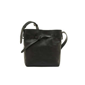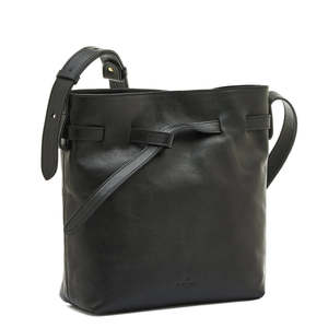 Women's bucket bag made of vegetable-tanned leather. Its essential design features a unique leather strap that circles its body. Wear it crossbody or over the shoulder thanks to the adjustable strap and brass stud. Covered magnetic snap closure. The interior is lined in cotton canvas and contains an open pocket and a handy strap fastened by a button for easy access to your key ring. Made by Il Bisonte in Italy. CONTENT & CARE: 100% Cowhide with brass hardware.