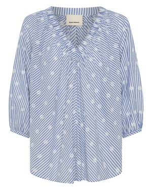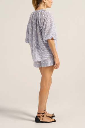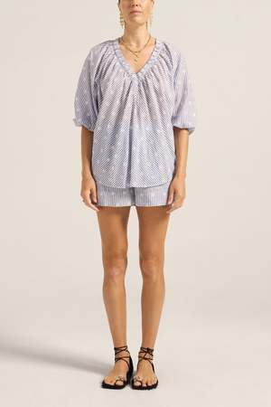 Romantic and relaxed, the Atli Top showcases our Eyelet Stripe Voile in all its glory. Designed with a loose, flowing silhouette, the Atli Top features a flattering gathered V-neckline and charming puff sleeves. The relaxed fit offers all-day comfort while maintaining an effortlessly polished look, making it perfect for everything from working at home to evening gatherings with friends. Style the Atli Top with the matching Clio Pants or Abas Skirt for a coordinated, sophisticated ensemble.