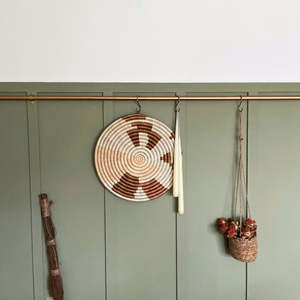 The Abstract Form Platter in White is a unique multifunctional dcor piece. Made in Rwanda with a time-honored weaving technique passed down from generations of artisans. - 14" Diameter - Natural and White - Hand-dyed sisal fibers wrapped around bunches of sweetgrass - Includes a loop on the back for easy hanging A go-to multifunctional piece for any space, and an ideal housewarming gift. It is a great wall hanging piece or tabletop platter. *Due to the handmade quality, some size and color variation may occur. Care Instructions: - Spot clean - Bright colors will fade in direct sunlight