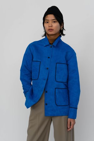 The Toulon Shirtjacket is a utilitarian style we've carried over every collectsion with varying details. Our signature oversized fit makes it a perfect piece for layering for the in-between seasons. For Series No. 8, we've added an extra patch pocket yet kept it asymmetrical for a more playful look. This is made from a faux suede dead-stock fabric sourced from New York City, made in New York City. This style will not return once it is sold out. Model is around 5'8 and she is wearing a size M.