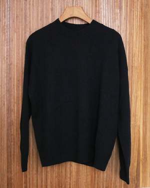 Minimalist crewneck sweater with a loose, oversized fit. The new production will be delivered early March. Pre-order now. Delivery mid November. PRODUCT DETAILS Color: Black 95% Cashmere 5% Wool Model wears size M