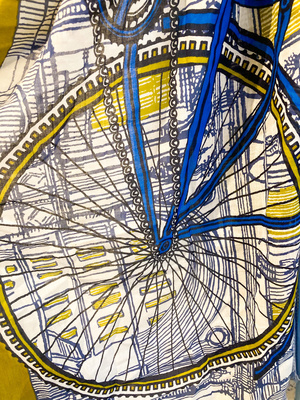 Even in the technique, Inoutoosh cultivates irregularity: Prints are created through silk-screening, the finishes on fringes have a worn effect and the final products have the feel of a custom-made tie-dye. Therefore, in the fabrication process, it's also a question of natural imprecisions, however, nothing is left to chance. This is the result of a beautiful synergy between designers, suppliers, and a collaborative creative team. Saddle up! More than ever cycling is the way of life in cities, roam around pedaling on a tandem and haul everything you need in your bike basket. Fabric Cotton Weaving Mat Washcare Nettoyage sec Know-how Imagined and designed in France Manufacturing Made in India Color Yellow - saffron Size Classic Dessin Paysage Type of product charpe Collection Spring Summer 20