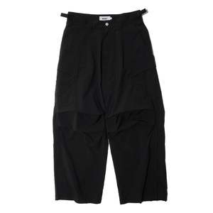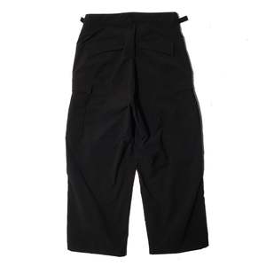 Details: - Drawing inspiration from military BDU pants, this is a relaxed fit cargo pants crafted from durable nylon ripstop fabric. Designed with knee pleats for enhanced articulation and waist adjustable strips on both sides, it offers functionality and comfort. Featuring side zipper at hem, two cargo pockets with flaps and two back pockets with flaps, it's ideal for contemporary styling and pairs perfectly with derby or round toe boots. - 100% Nylon - Two cargo pockets - Two back pockets - Waist adjustable strips - Side hem zippers - Belt loops - Made in China Sizing: - Relaxed fit - Jay is 180cm and 60kg, wearing M - How we measure - S M L XL 1/2 Waist 39 41 43 45 Inseam 68 70 72 74 Outseam 103 105 107 109 Leg opening 28 29 30 31 Care: - Machine wash under 30. Do not bleach. Do not tumble dry. Iron low.