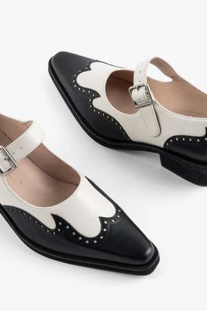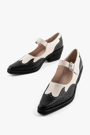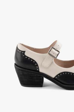 MEET FRANKLIN Did we just make a mary jane slightly western? Saddle up baby, and meet FRANKLIN, our new snipped toe mary jane. This showstopper is bound to garner a slew of compliments. Stitched leather with western detailing meets classic mary jane vibes on the upper. The lifted heel and elongated toe elevate the shape to a more forward direction that we are very on board with.